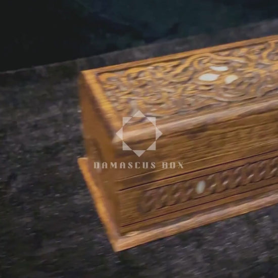 hand carved box, mother of pearl box, luxury wooden box, Damascus craftsmanship, oriental carved box, handmade gift, Damascus Box